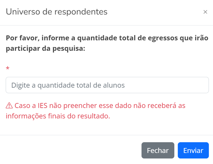 Passo 2: Informe a quantidade de egressos que participarão da pesquisa e clique em “enviar”: