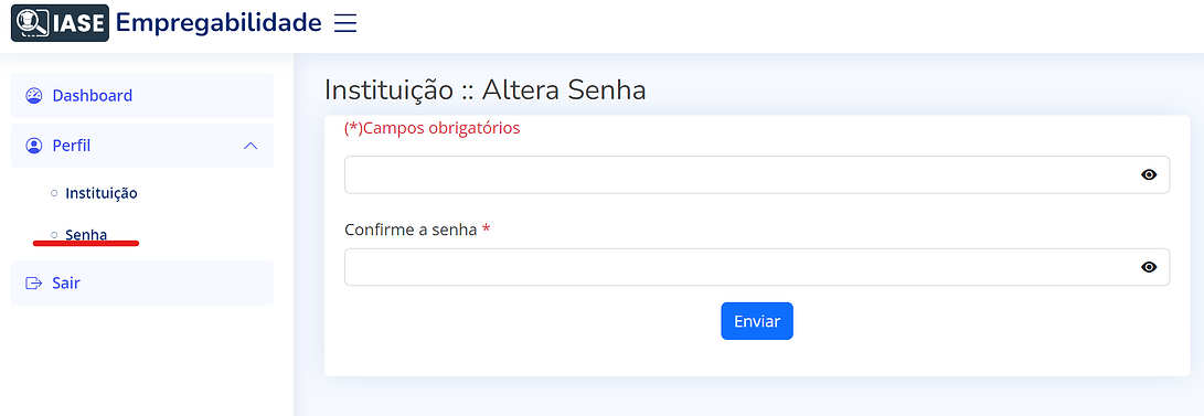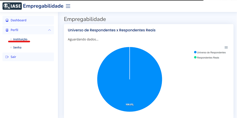 Passo 3: Acesse a área da instituição no menu lateral esquerdo, dentro da aba “Perfil”: